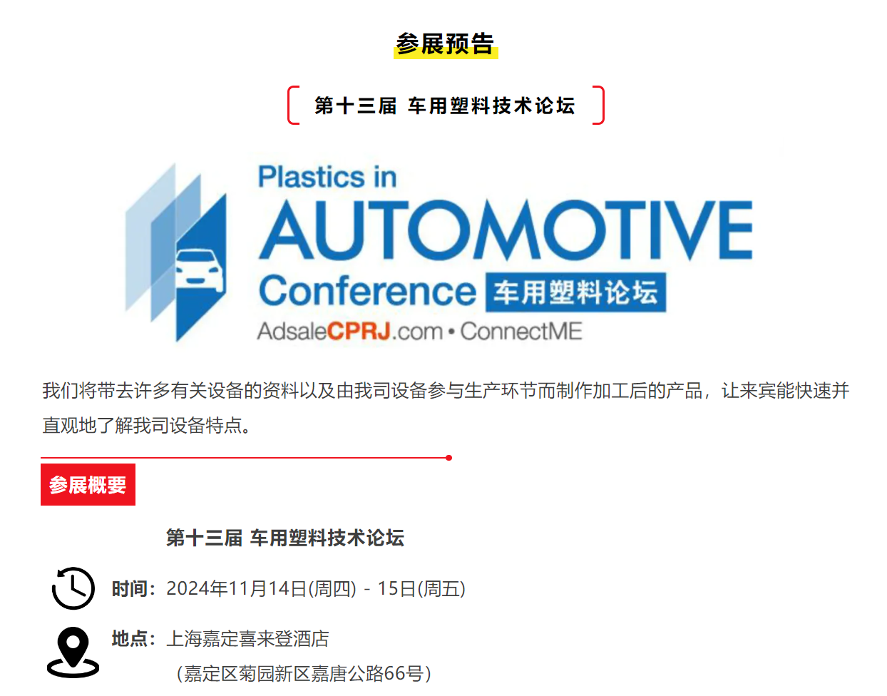 參展預(yù)告 第十三屆CPRJ車用塑料技術(shù)論壇
